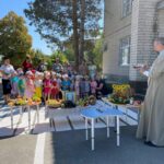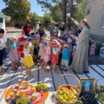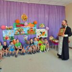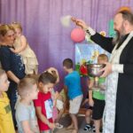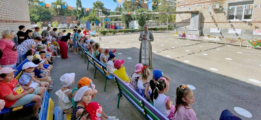 Благочинный Приморско-Ахтарского церковного округа протоиерей Иоанн Феер, настоятель храма великомученика Георгия Победоносца станицы Бриньковской иерей Сергий Ревякин и клирик храма Воскресения Словущего города Приморско-Ахтарска иерей Алексий Беляк поздравили воспитанников и воспитателей с праздником, рассказали его историю, освятили плоды нового урожая и окропили святой водой детей и взрослых.