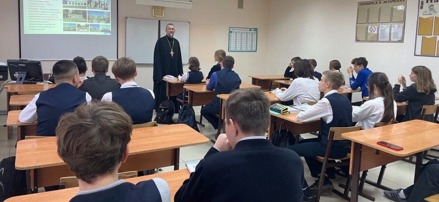 Батюшка напомнил школьникам о нашей победе в Великой Отечественной войне и о той цене, какой нам досталась эта Победа. Отец Иоанн расспросил ребят о героях города Приморско-Ахтарска и подчеркнул, что молодому поколению очень важно знать историю своей страны и малой родины.