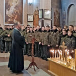 Во время молебна о воинах СВО были совершенны поклоны с молитвой преподобного Ефрема Сирина. Была отслужена лития по усопшим с упоминанием погибших воинов и казаков. Традиционно во дворе храма священник окропил кадетов святой водой.