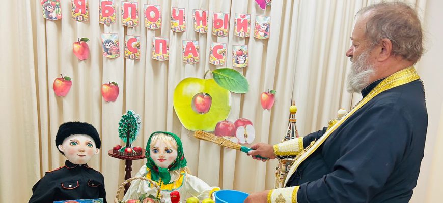 Отец Георгий провёл беседу с работниками дошкольного учреждения: поздравил с Преображением Господним, рассказал о значении праздника. Также были розданы тематические брошюры. Отец Георгий провёл беседы о празднике и с малышами, освятил фрукты нового урожая, а дети показали праздничный концерт.