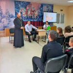 Нстоятель храма великомученика Георгия Победоносца станицы Бриньковской иерей Сергий Ревякин напомнил школьникам Заповеди Божии. «Полюбите ближних ваших: родителей, братьев и сестёр, людей, окружающих вас. Соблюдайте режим питания, будьте сильны и здоровы духом!» – сказал отец Сергий и пригласил детей и их родителей в храм, поздравил с наступающими зимними праздниками.